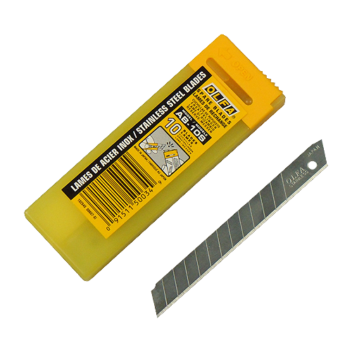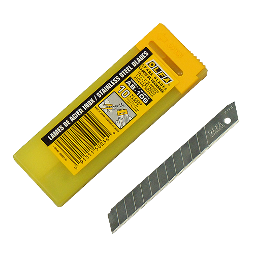 • Etui mit 8 Edelstahl-Ersatzklingen für OLFA