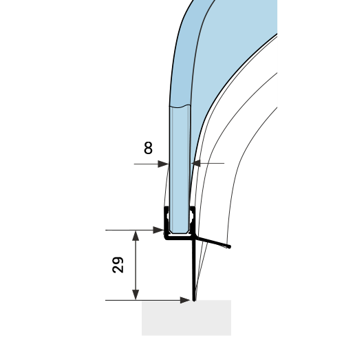 d231r Wasserabweisprofil gebogenfür 6 - 8 mm GlasLänge 1.010 mmtransluzent